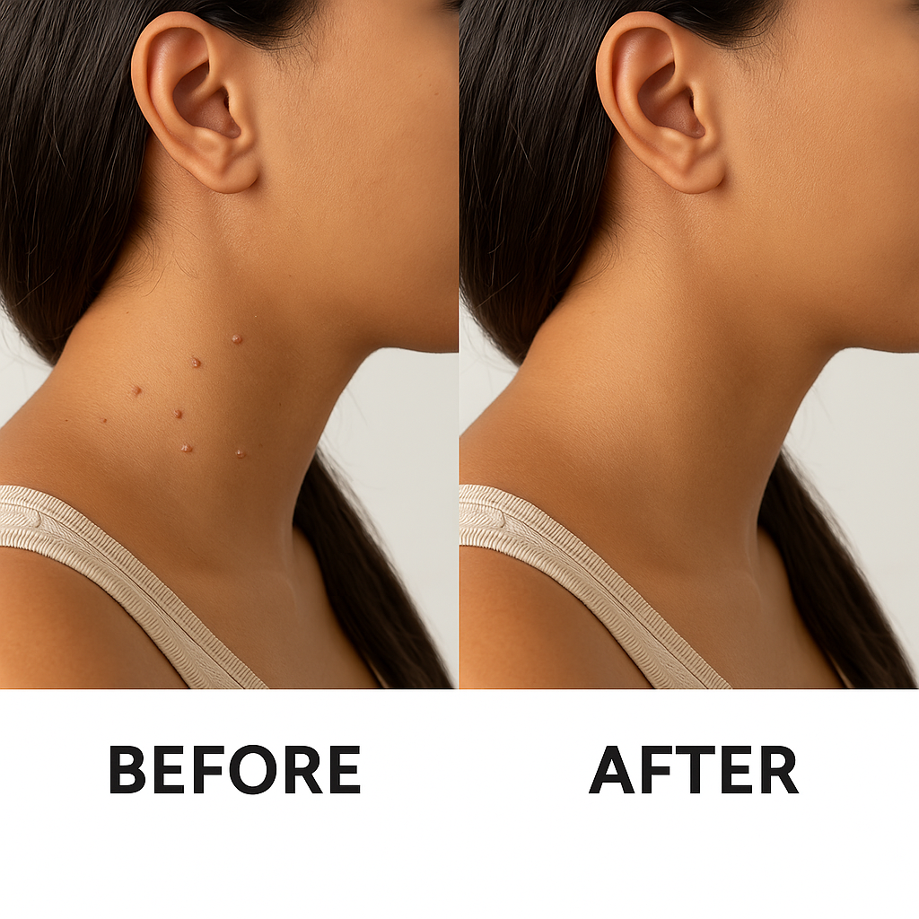 Skin tags are common, harmless growths that can appear anywhere on the body, often around the neck, underarms, eyelids or groin. While they pose no medical threat, many people choose to remove them for cosmetic reasons or to prevent irritation.